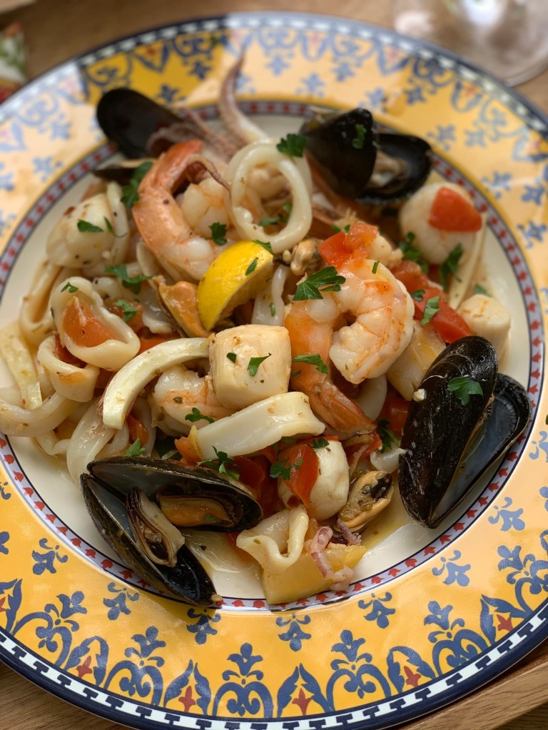 This is the best seafood salad recipe in my collection ,written by one of my favorite chefs and taken from one of her many cookbooks. So long summer! It’s been . . . ummm . . . interesting.
