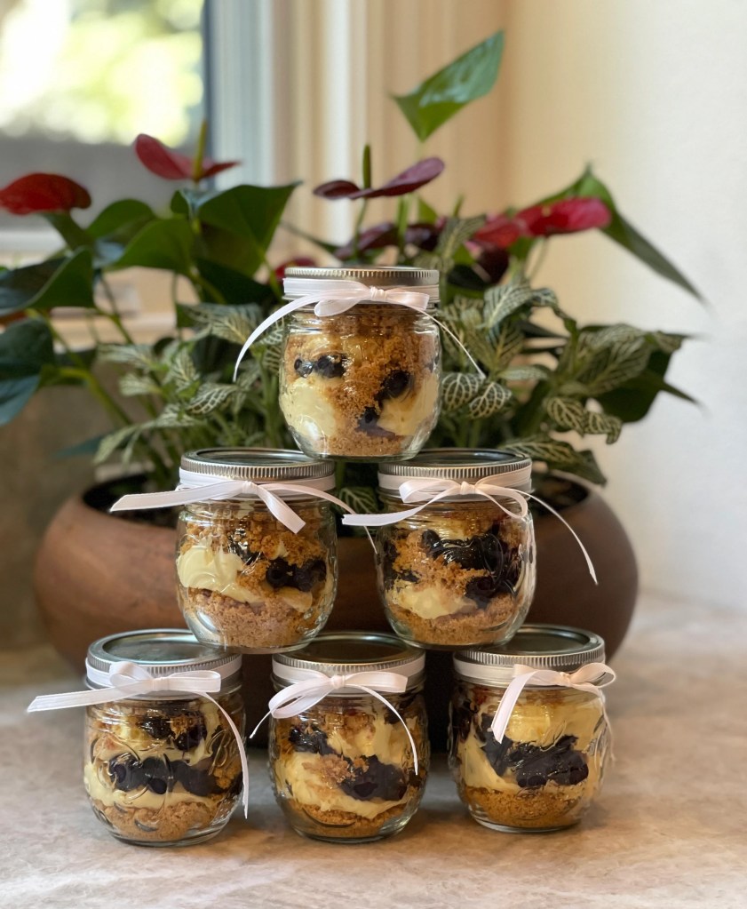 I named this little dessert Joy in a Jar as it has been proven to ease the pain of a breakup; hasten the recovery of knee-replacement surgery; and, bring the biggest smile you’ve ever witnessed to my granddaughter’s sweet face. Unfortunately, the effects of my Joy in a Jar are temporary: the sting of rejection returns; the reality of painful rehab sets in; and, even the radiant smile of my happy-go-lucky granddaughter is eventually replaced by a smirk and an eye roll (she is, after all, 14).
